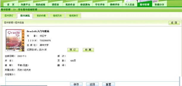 6.图书管理本模块针对图书管理工作的需要,设置了海量图书自由分类、轻松管理,可快捷实现登记、检索、借阅、跟踪等一系列管理功能,还能有效支持学校学生捐赠自助建立图书馆方案,丰富学生课余阅读资料,培养学生爱护公物及集体荣誉感。