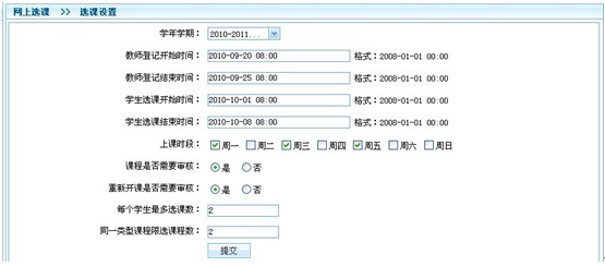 13.网上选课为落实国家新课程改革的要求,本模块提供了中小学生网上选课管理功能,包括选修选课设置、学生选课、选课成绩录入、选课结果查询等一系列的完整选课解决方案。教务处统一设置选课时间段,教师的自主拓展课程发布在系统中,学生在选课时段内进入系统自行选择。
