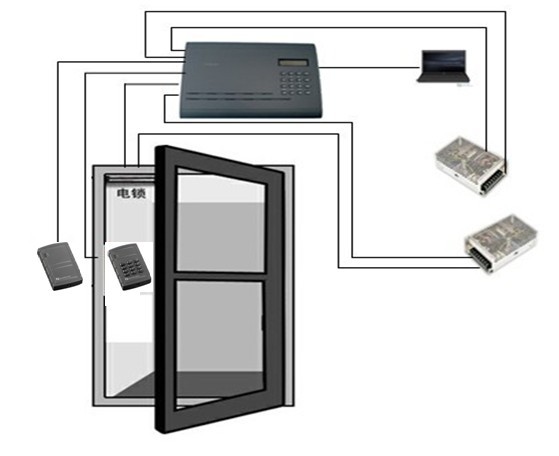 使用者在门外出示经过授权的感应卡,经读卡器识别确认身份后,控制器驱动打开电锁放行,并记录进门时间。使用者离开所控房间时,在门内同样要出示经过授权的感应卡,经读卡器识别确认身份后,控制器驱动打开电锁放行,并记录出门时间。