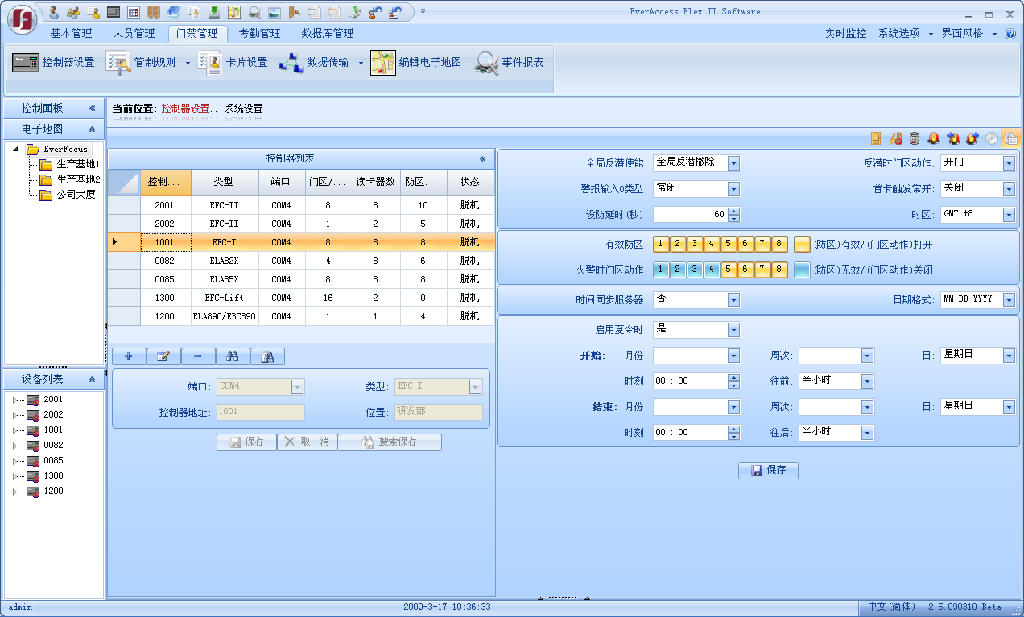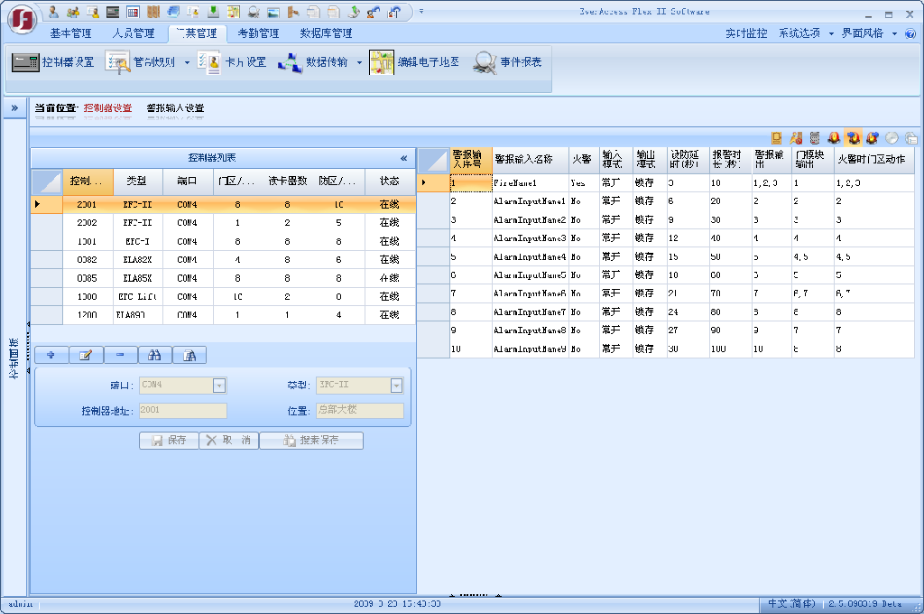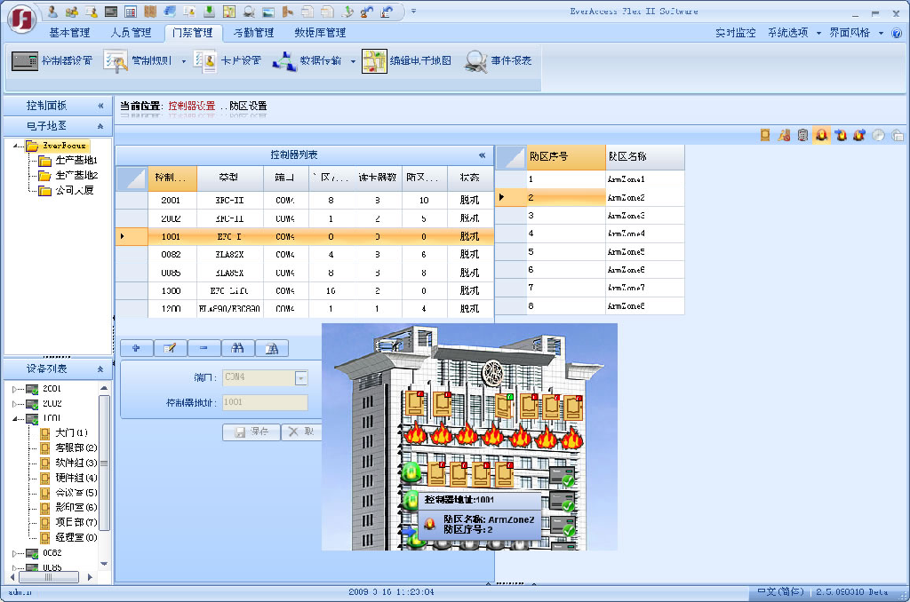 - 可快捷的对出入口、报警防区、读卡器等进行设置;