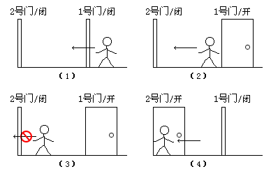 (3)1号门未关闭,员工想要打开2号门,按照互锁规则,该员工此时无法打2号门。