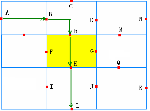 例如:事先设定刷卡到黄色区域的进入路线为A、B、E外出路线为H、L后,甲必须顺序地从A门刷卡经过B门和E门进入外出时甲必须从H门刷卡经过L门才能从该区域中出去,否则门不会开,同时系统会按照事先的设定发出警报信息。
