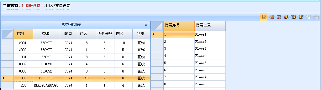 以EFC-08-Lift32楼层电梯控制器为例(如图 5‑10),其可连接8个读卡器,控制32层楼电梯。在右侧“子功能编辑区”编辑每个“楼层位置”的名称,编辑一个楼层后,就可以通过授权相关人员进出楼层的权限了。